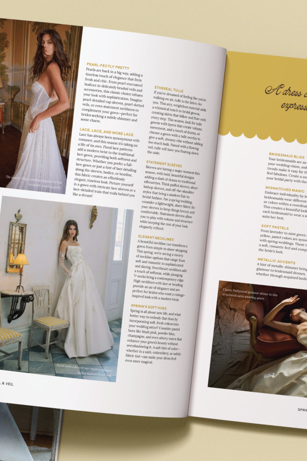 Bridal & Veil is a 24-page wedding magazine concept I created. Think spring garden weddings, dreamy florals, and fresh, modern design. The whole piece is meant to feel like a high-end bridal publication you’d pick up at a boutique. This issue, specifically, is full of inspiration and real-life ideas perfect for a Spring wedding. I also included four concept ads for wedding-forward brands to make it feel like a fully flushed-out magazine, not just a school project.